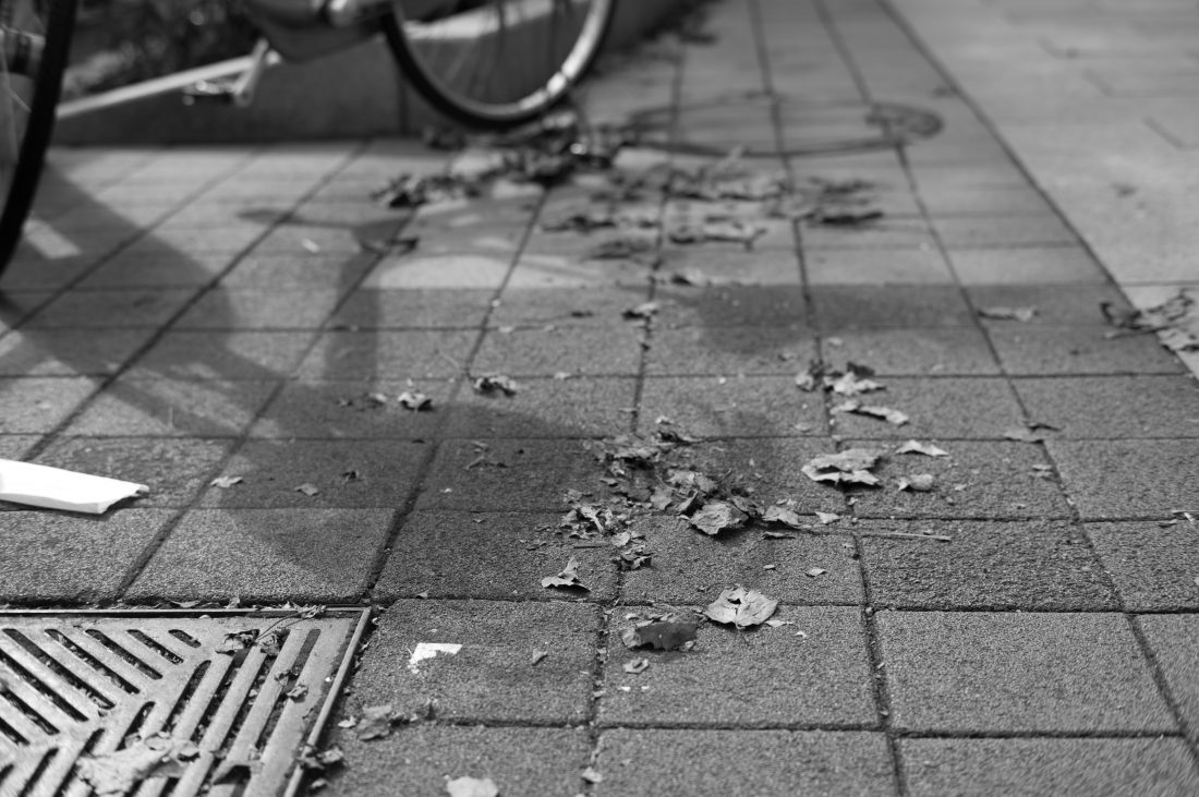 地面に落ちた枯れ葉が自転車のカゴの影に入っているに見えた写真、大きなトラクターの影と作業員の方の後ろ姿、葉っぱの前ボケとそれを撮る自分の影など…